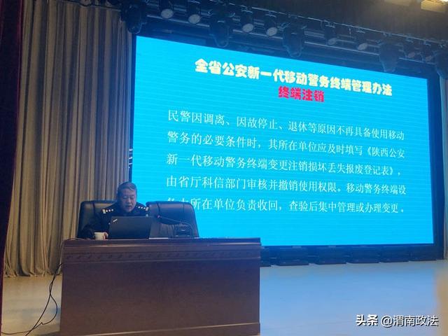 渭南政法网(市公安局讯)为持续推进科技兴警战略,有效提升现代警务信息化建设水平,全面提高民警警务实战能力,根据部省对新一代移动警务终端配发要求。10月16日上午,市公安局举行机关一期新一代移动警务终端发放培训会,市公安局党委委员、副局长王少飞参加会议并讲话,市公安局机关有关警种、部门负责同志及一期新一代移动警务终端配发人员参加了培训。会议由信通科技处处长王广兴主持。