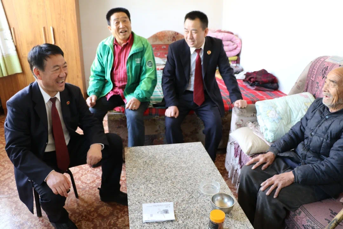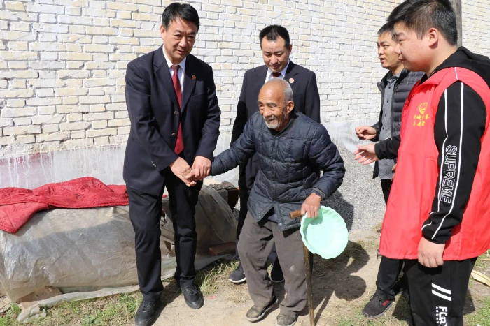 该院结合“我们的节日·重阳”主题文明实践活动要求,为进一步弘扬尊老、爱老、敬老的良好风尚,营造尊敬老人、爱护老人、关心老人的良好氛围,组织了这次慰问幸福院和志愿服务活动。刘武军查看了幸福院日间休息室、饭堂等场所,向村支书杜希灵了解了幸福院开办情况,并为幸福院送上米、面、油等生活用品。随后,在驻村第一书记张从军和村支书带领下,刘武军副检察长一行前往去该村建档立卡贫困户杜太学家里走访。刘武军副检察长与杜太学老人亲切交谈,询问他的身体、扶贫帮扶措施落实以及收入等方面状况,嘱咐他一定要保重身体,有什么困难及时向村干部、帮扶干部反映。