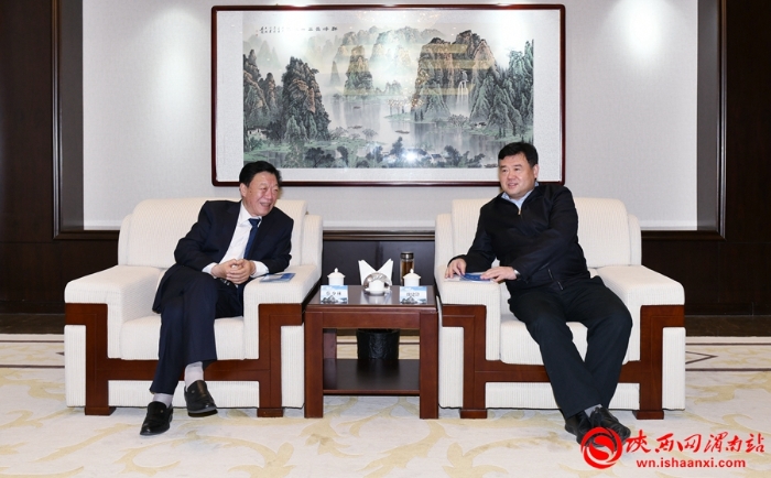 12月23日下午,渭南市委书记魏建锋会见陕西省企业家协会监事长蔡少林并进行座谈。记者 许艾学 摄
