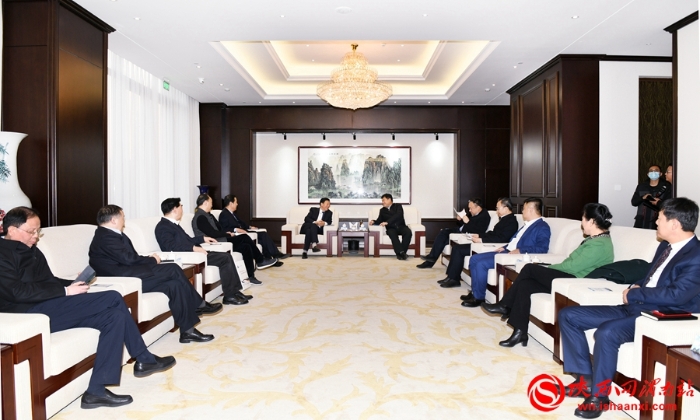 渭南市委书记魏建锋、市长王琳会见参加百企千项万人进渭南系列活动·2020陕西百强企业发布暨陕西名企助推渭南高质量发展大会的省企业家协会监事长蔡少林、会长段克明及重要会员单位代表。记者 许艾学 摄