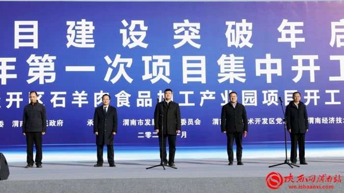 渭南市项目建设突破年启动仪式暨2021年第一次项目集中开工动员会在经开区石羊肉食品加工产业园项目建设现场举行。记者 许艾学 摄