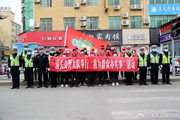 【潼关交警大队积极开展“我为群众办实事”主题活动】3月17日,潼关县公安局交通警察大队围绕“服务群众、服务发展、提高社会和群众满意度”在县城北十字开展“学党史、重行动”“我为群众办实事”主题实践活动。