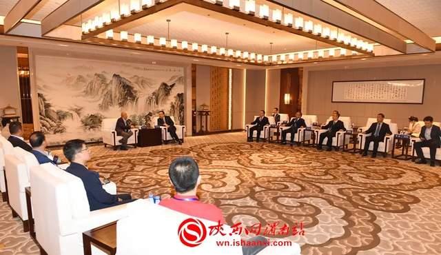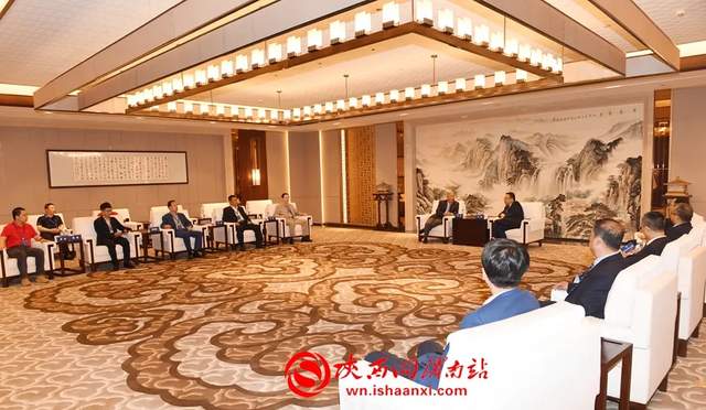 渭南市人大常委会主任马赟,市委常委、副市长杨嵩,市委常委、统战部部长、市委秘书长黄忠良,市政协副主席贺韧,市政府秘书长王小平,市发改委主任赵林斌,市贸促会会长王谦参加会见。记者 杨青山 摄