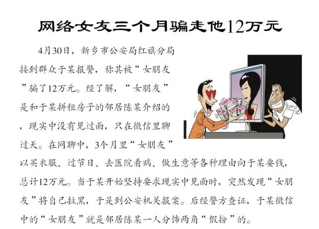 网恋有风险,交友需谨慎。在无法甄别对方真实身份的情况下,不可轻信其甜言蜜语和各种说辞,尤其对涉及金钱方面的往来更要提高警惕,避免财产损失,一旦受骗立即报警。