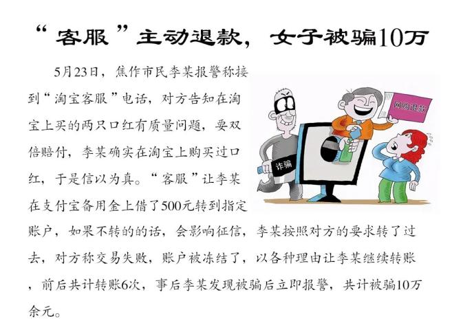 市民在接到自称客服的电话,说需要退款或者重新支付时,要亲自登录官方购物网站查询,或者拨打正规客服电话,不要轻易相信任何退款电话。此外,不少市民不知道支付宝中的备用金是什么,以为是商家退款,其实不是。备用金是支付宝给予个人一定的借款额度。大家一定要妥善保管好银行卡号、密码和验证码信息,以防被骗。