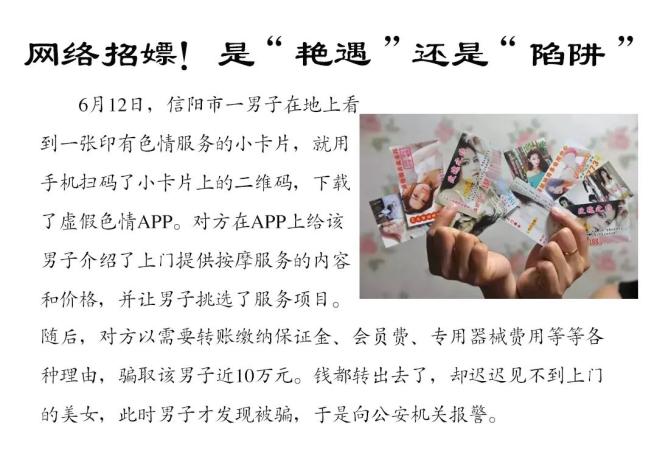 招嫖和嫖娼都是违法行为,都要接受法律的制裁。不法分子利用互联网发布虚假的“招嫖”信息进行网络诈骗,借招嫖之名行诈骗之实,导致受害人财物损失。市民朋友们只要洁身自爱,就不会掉进骗子的陷阱。