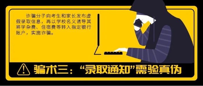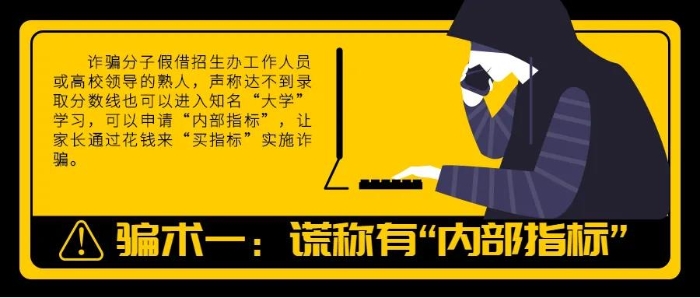 3、查分、填报志愿应通过教育部门公布的官方网站进行操作,称交钱可以拿到“内部指标”“快速搞定”的,一律都是诈骗。
