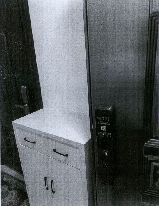 左为小波家外移后入户门,右为楼上邻居原有入户门