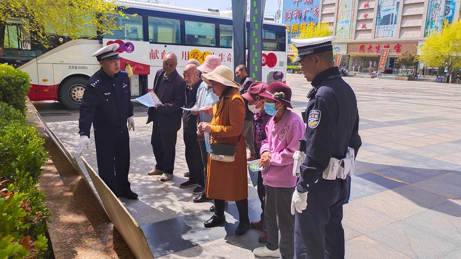 【白水公安交警进广场开展交通安全宣传】为深入开展“一盔一带”交通安全宣传,提高交通参与者遵守交通法规的自觉性和安全出行意识,预防道路交通事故的发生。2023年4月10日上午,白水县公安局交通管理大队利用群众集中外出健身时段,组织民警走进中心广场开展交通安全宣传活动。