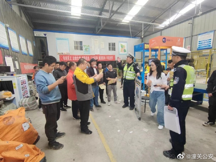 4月12日,潼关交警大队民警走进辖区快递站开展交通安全宣传活动。