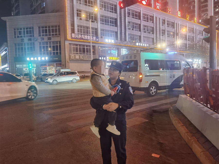 【澄城公安:女巡警化身“临时妈妈” 暖心救助走失儿童】4月10日晚,巡特警大队民警巡逻时,发现一个小男孩站在马路中间,很危险。民警将孩子抱到路边安全区域,随后,询问孩子基本情况,孩子一声不吭;后向周边群众询问,也无人知晓。于是民警带着小孩在原地等待。10余分钟后,一名50多岁的妇女神色焦急的拉着儿童推车往过走,民警立即上前询问,该妇女看到民警抱着孩子,这才松了口气。在对比了该妇女提供的相关证件和照片,确认其是小男孩家属后,巡逻队员才将孩子安全交给家属,并再三嘱咐其要看好孩子。