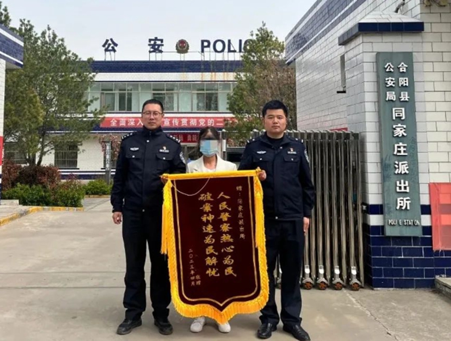 合阳公安同家庄派出所破案追赃挽损失获锦旗。