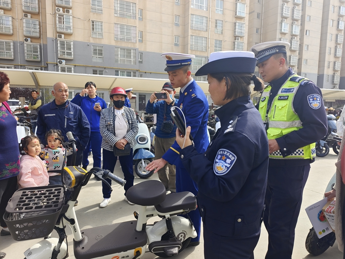 大荔公安交警联合县东城街道北郊社区、县消防救援大队、雅迪电动车销售商深入九州福鹏小区,开展交通安全和消防知识宣传活动。
