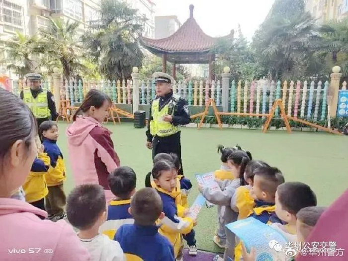 华州公安交管大队民警走进辖区幼儿园宣传交通安全。
