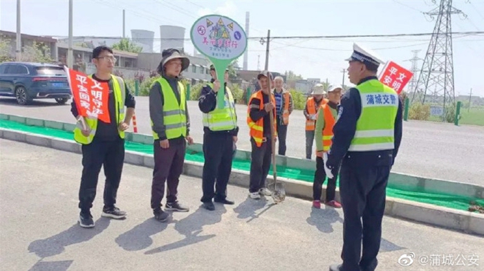 蒲城交警走进辖区108国道施工路段,向施工人员开展交通安全知识宣传。