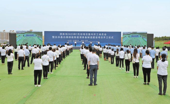 7月27日,2023年7月份全市项目集中开工动员会在白水县白扬绿能新能源装备制造项目建设现场举行。图为白水县主会场。 记者 马辛 摄影报道