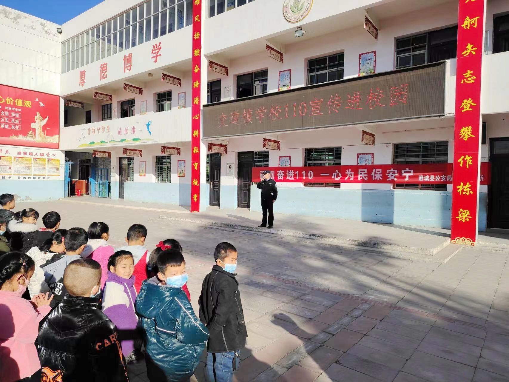【110宣传进校园 平安守护在身边】为进一步增强学生的法律知识,提高学生自我保护能力,切实维护学校治安稳定,营造和谐、健康、安全的校园环境。1月9日上午,澄城县公安局交道派出所组织“110宣传小分队”,走进辖区交道镇学校,开展“砥砺奋进110 一心为民保安宁”主题宣传活动。