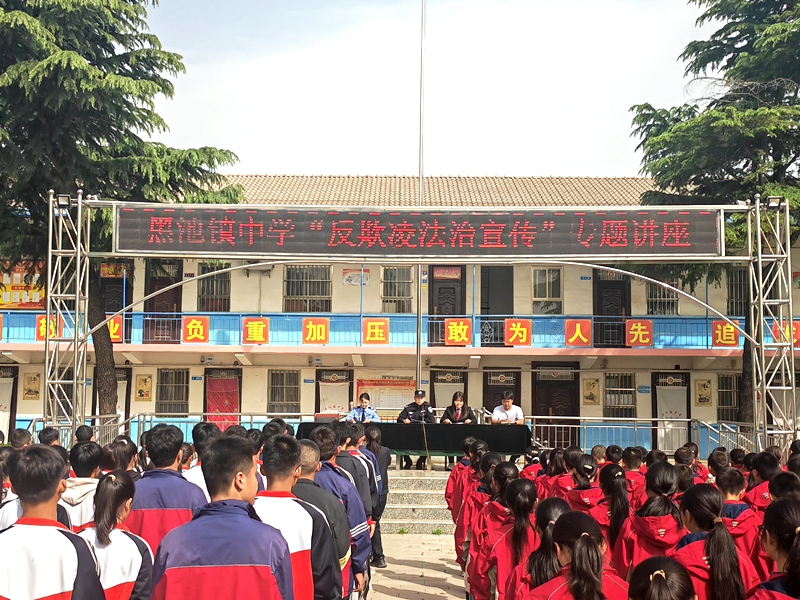合阳县黑池司法所联合黑池镇政府、黑池派出所、黑池法庭走进黑池镇中学,开展防范校园欺凌专题普法宣传活动。