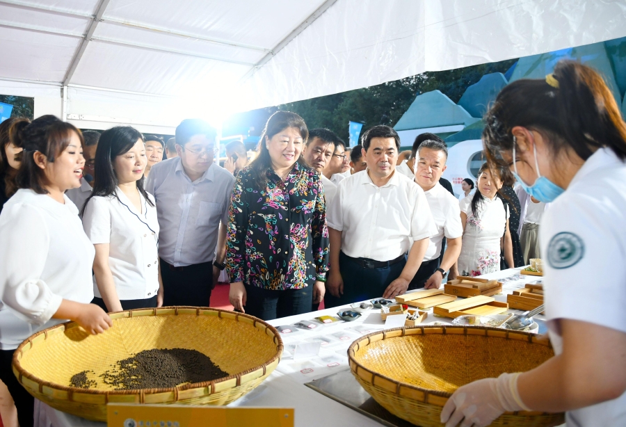 市民参观特色农产品(中药材)展示。记者 郝豆 摄