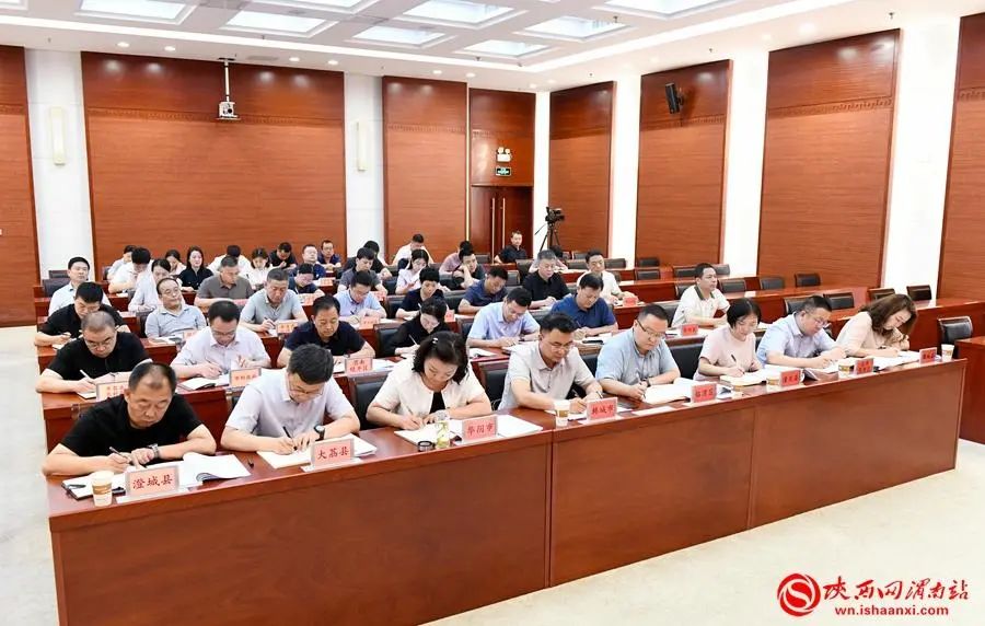 会上,渭南市对外经济技术合作局局长杜军通报了渭南市2024年1-7月份各县(市、区)招商引资情况及市级各产业链招商工作情况,副局长原向勇解读了《渭南市重点产业链“链长制”招商工作机制考核评价实施细则》。蒲城县、渭南高新区、华州区、富平县围绕上半年招商引资工作进行交流发言。渭南市委宣传部、市工业和信息化局围绕牵头产业链上半年工作情况进行交流发言。