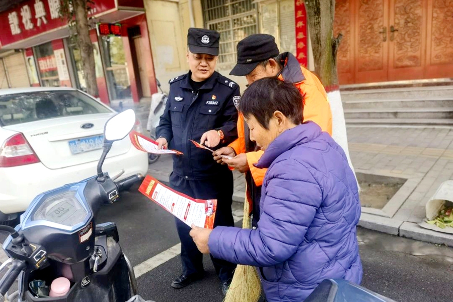 蒲城公安交警进社区开展冬季交通安全宣传活动。