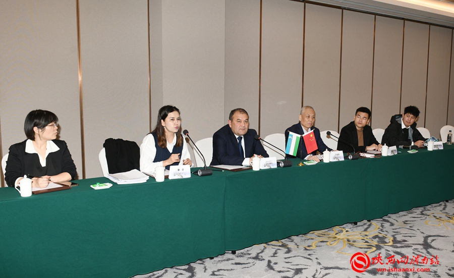 1月21日,乌兹别克斯坦撒马尔罕州库什拉巴德区区长季尔绍德·沙卡尔博耶夫一行来渭洽谈经贸合作。图为季尔绍德·沙卡尔博耶夫与渭南企业家代表座谈。记者 杨大君 摄