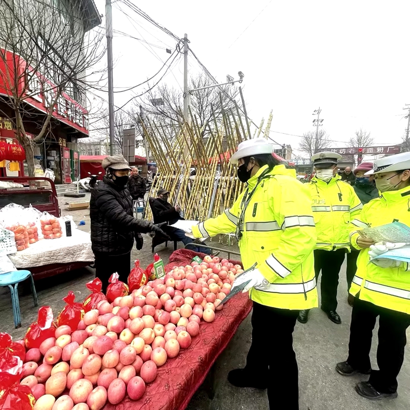 大荔县公安局交通管理大队全警上路对主城区、农贸市场周边等主要路段进行疏导保畅。