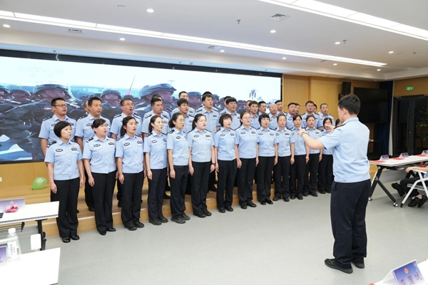 临近庆祝中华人民共和国成立76周年,培训班组织开展“红歌传唱忆初心,警心向党庆华诞”红歌联唱活动。学员们利用晚间课余时间,自发选曲、排练、编排队形。