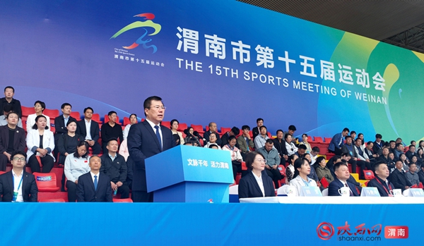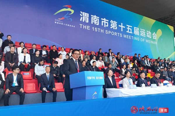 开幕式现场,渭南市委书记樊维斌宣布开幕令。市委副书记、市长陈晓勇致开幕辞,陕西省体育局副局长李长军致辞,临渭区区长菊峰致欢迎辞。开幕式由副市长张开主持。市政协主席李军政,市领导田瑞、岳博、朱忠效、薛清军、王志斌,临渭区委书记李曙升等出席。