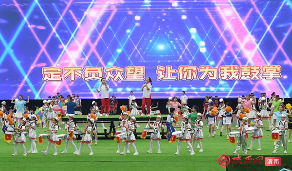 渭南市第十五届运动会开幕式文体表演。记者 杨大君 摄