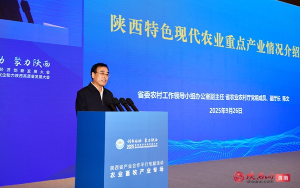 陕西网讯(记者 李倩倩 许艾学)9月26日,“创新驱动 聚力陕西”2025民营经济创新发展大会暨知名民企助力陕西高质量发展大会召开之际,陕西省产业合作平行专题活动农业畜牧产业专场在西安举行。陕西省副省长武文罡,渭南市人民政府市长陈晓勇出席并致辞。全国工商联机关服务中心主任苏现合,陕西省政府副秘书长魏延安,陕西省工商联副主席鲍剑,陕西省农业农村厅副厅长陈文等领导出席活动。渭南市副市长张开主持活动。