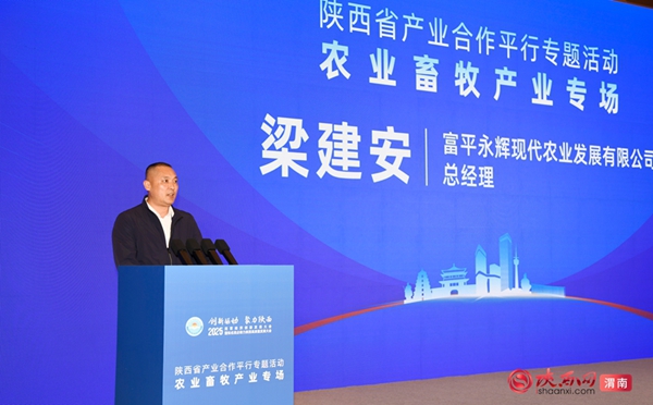 富平永辉现代农业发展有限公司总经理梁建安交流发言。记者 许艾学 摄