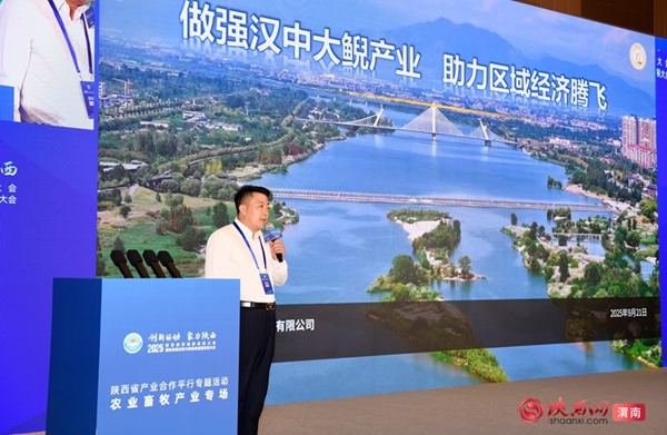 汉中龙头山水产养殖有限公司总经理程虎交流发言。记者 许艾学 摄