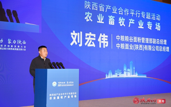 中粮粮谷面粉管理部副总经理、中粮面业(陕西)有限公司总经理刘宏伟交流发言。记者 许艾学 摄