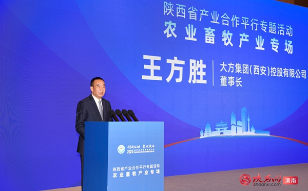 大方集团(西安)控股有限公司董事长王方胜交流发言。记者 许艾学 摄