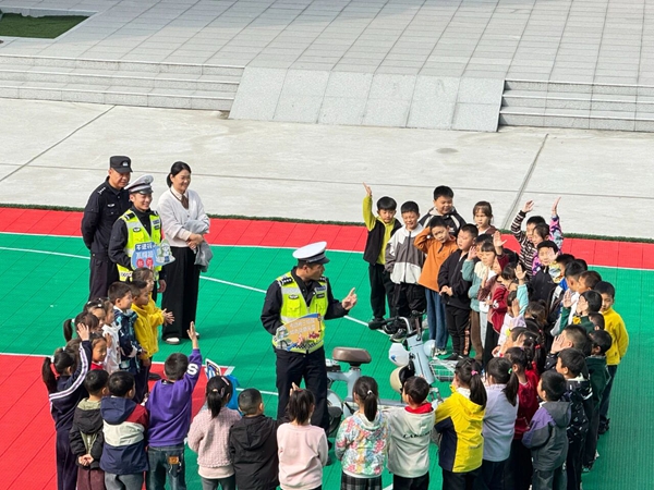 大荔交警开展交通安全进校园活动。