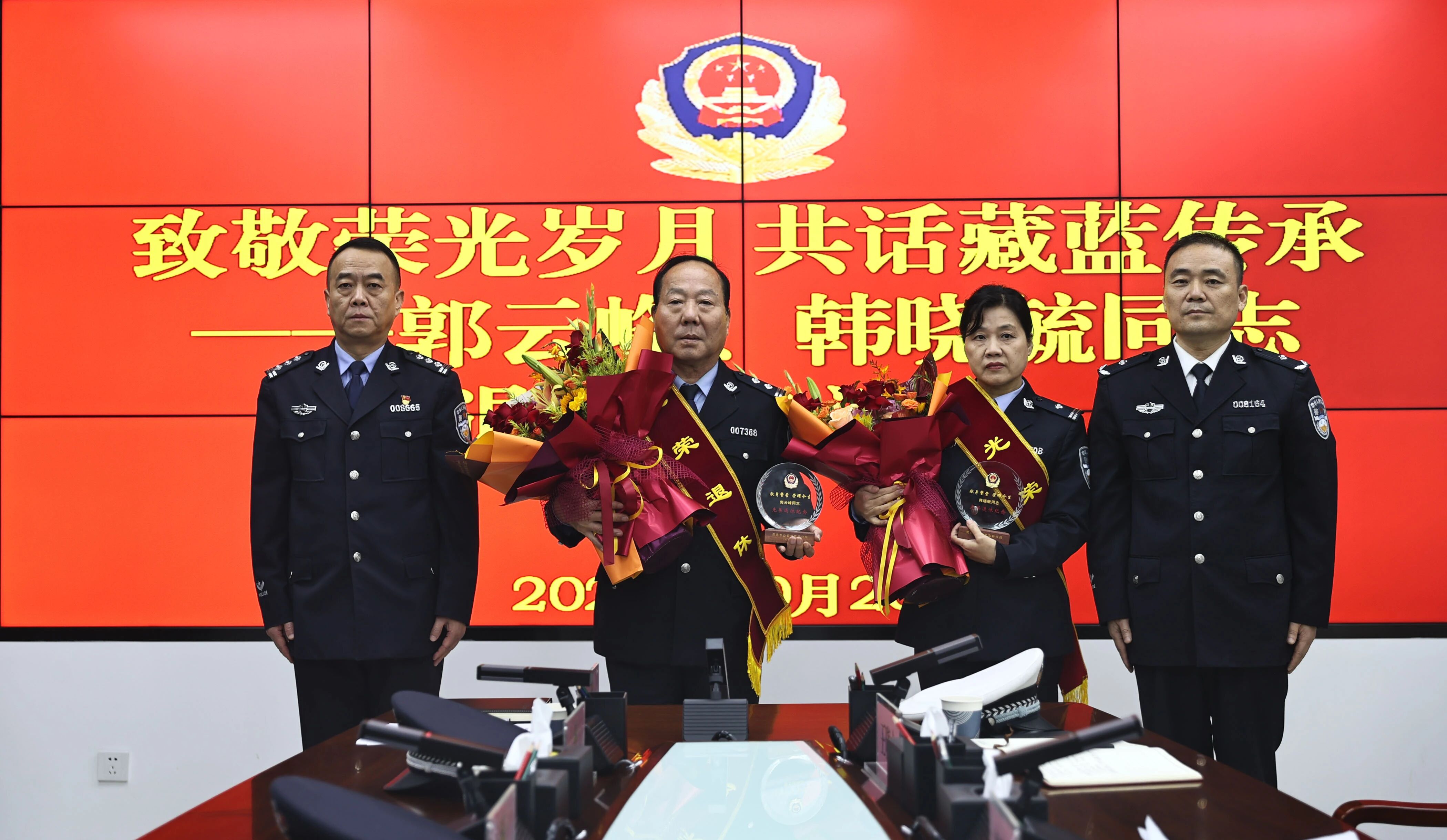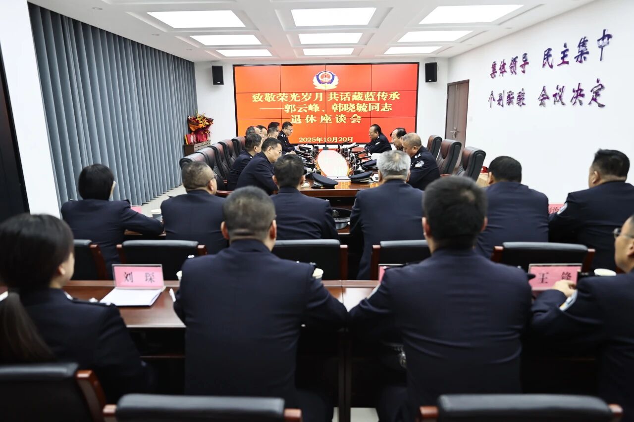 时光的笔,总是悄然勾勒出从青丝到白发的轨迹;忠诚的底色,却在岁月的洗礼中愈发璀璨生辉。10月20日,高新公安分局为郭云峰、韩晓毓两位同志举行荣誉退休座谈会,分局党委班子成员及部分民警代表齐聚一堂,共同见证荣誉时刻,致敬从警生涯,传承公安精神。