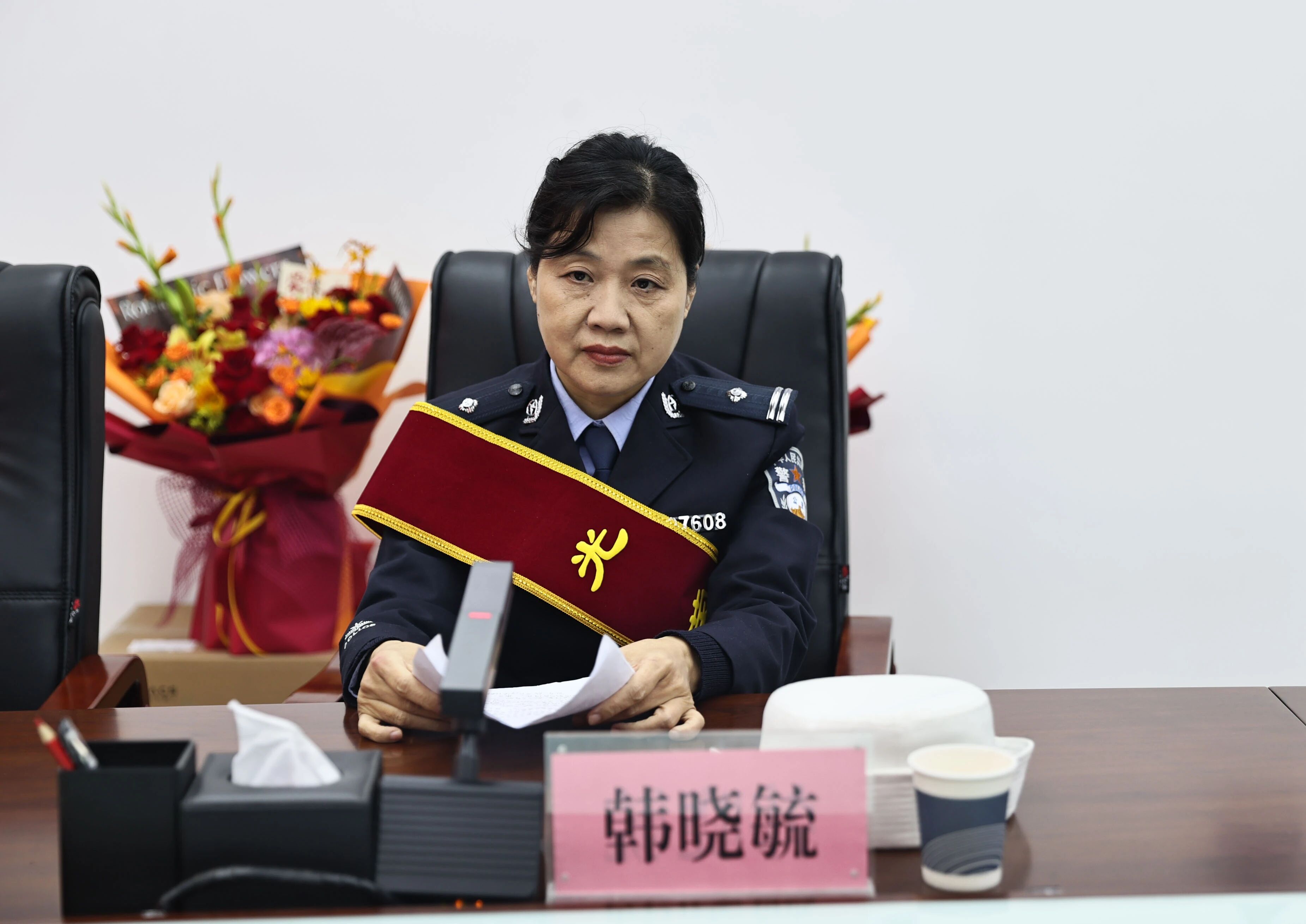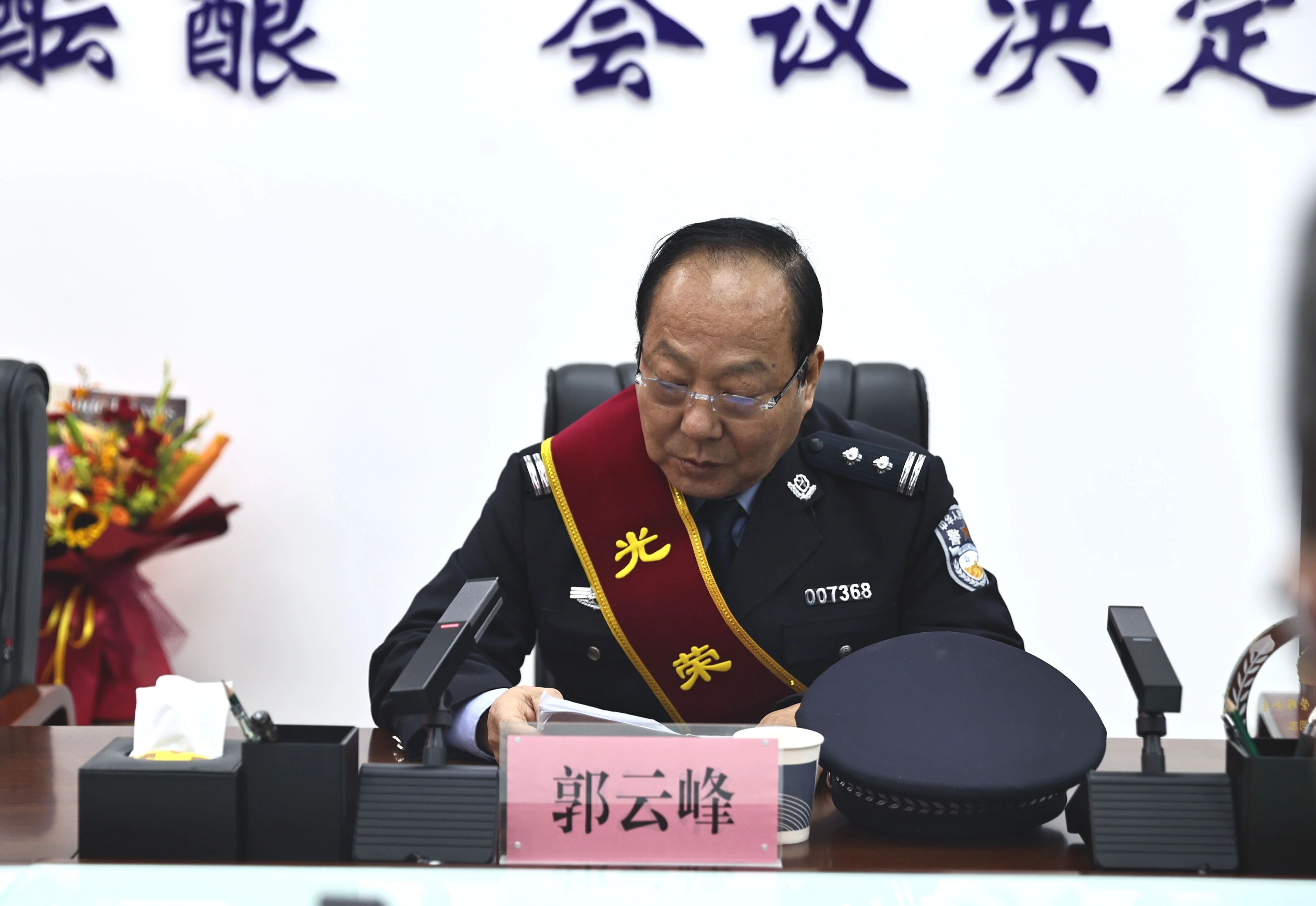 王涛在讲话中高度肯定了郭云峰、韩晓毓两位同志为高新公安事业所做出的贡献。郭云峰同志从军装到警服,三十年来转战内保、治安、刑侦等多岗位,参与侦办大要案件百余起,始终兢兢业业、默默奉献;韩晓毓同志深耕交警出纳岗位三十余载,以数字书写忠诚,在平凡岗位上践行初心使命,为交警事业贡献巾帼力量。