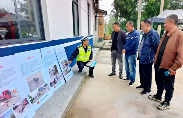 大荔交警依托执法检查站开展交通安全宣传活动。