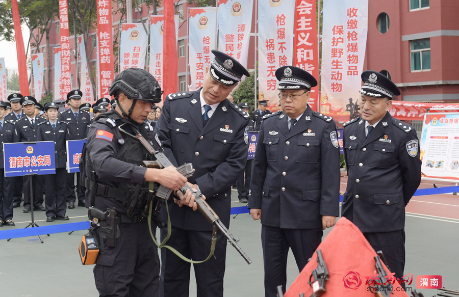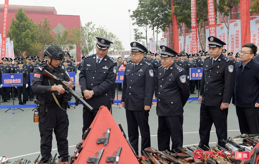参加活动领导查看收缴枪支。记者 杨大君 摄