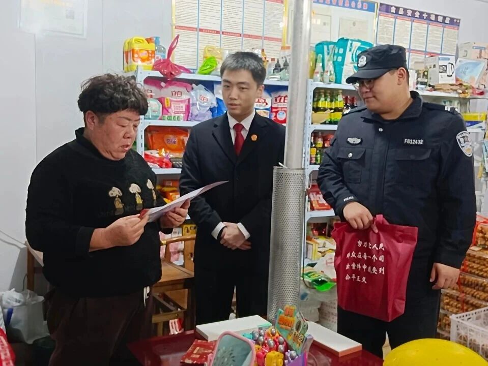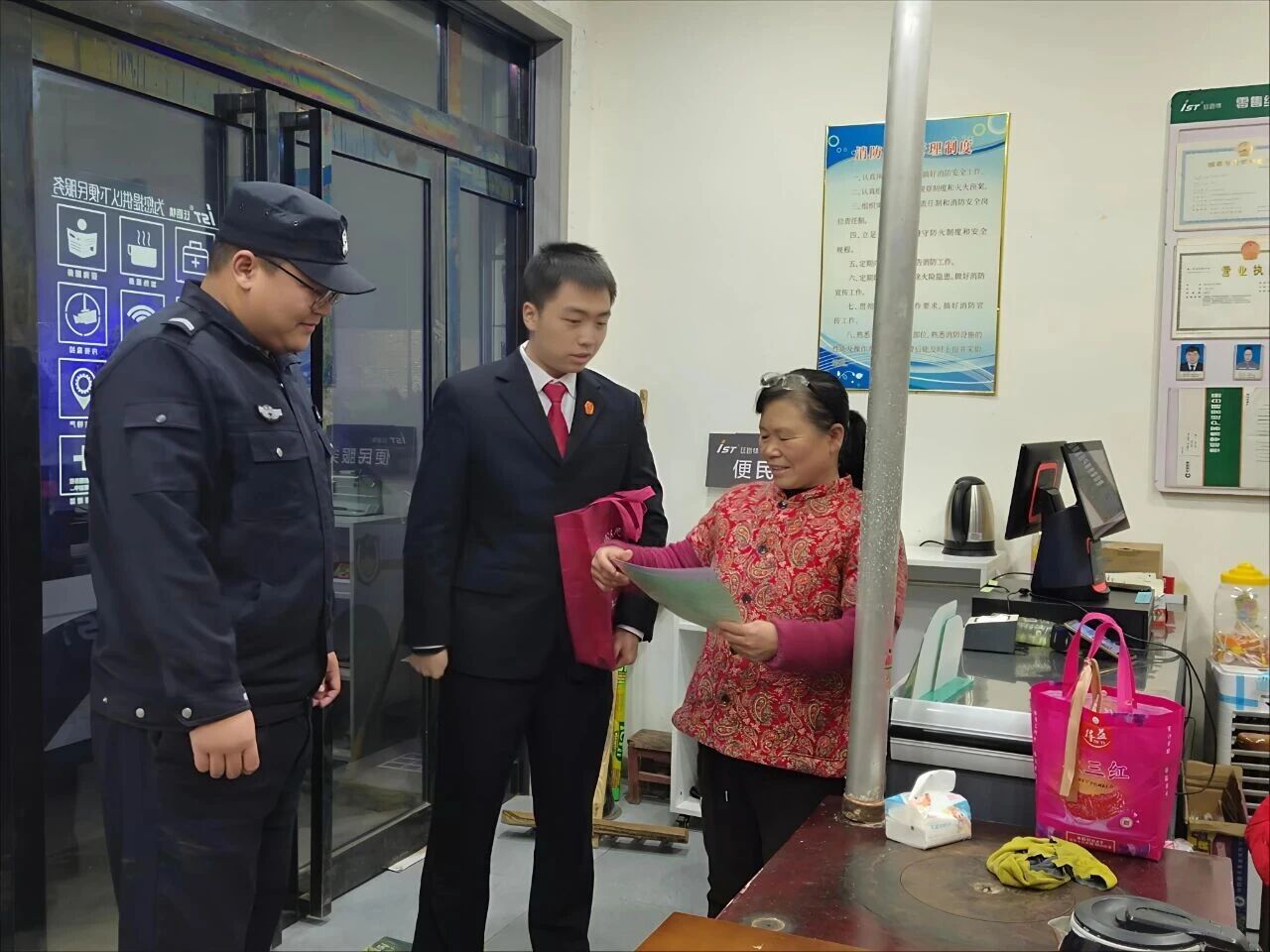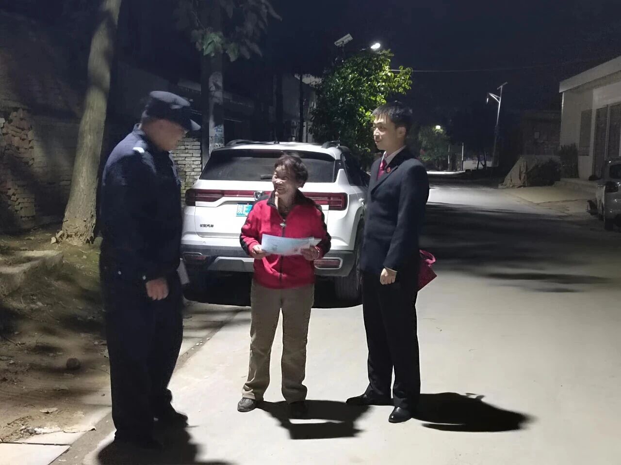 “巡逻+宣传+服务”的融合模式让夜巡更有温度。干警们在巡逻途中主动走访临街商铺与居民住户,一边倾听群众对司法服务、治安防控的意见建议,一边聚焦电信诈骗、邻里纠纷等热点问题,发放普法手册、讲解法律知识,叮嘱群众注意用电用气安全与夜间出行防范要点。