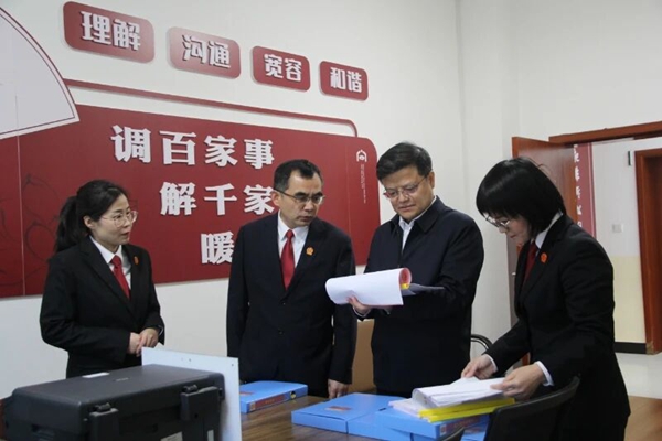 11月4日,渭南中院党组书记、代院长赵进轩深入蒲城县法院调研,先后到党睦人民法庭、孙镇人民法庭、县法院诉讼服务中心、多元化矛盾纠纷调处中心等场所,详细了解人民法庭“立审执”一体化运行、“两状”示范文本推广应用、基础建设等情况,并召开座谈会听取工作汇报。