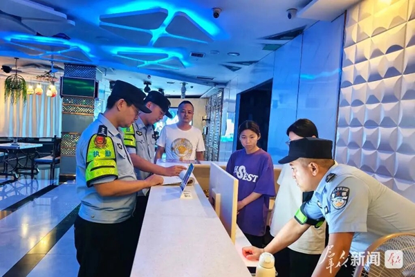 7月18日晚,合阳县公安局开展社会治安清查整治统一行动,图为治安大队民警检查娱乐场所。