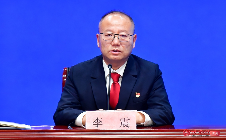 渭南市委政法委副书记李震回答记者提问。记者 罗娜 摄