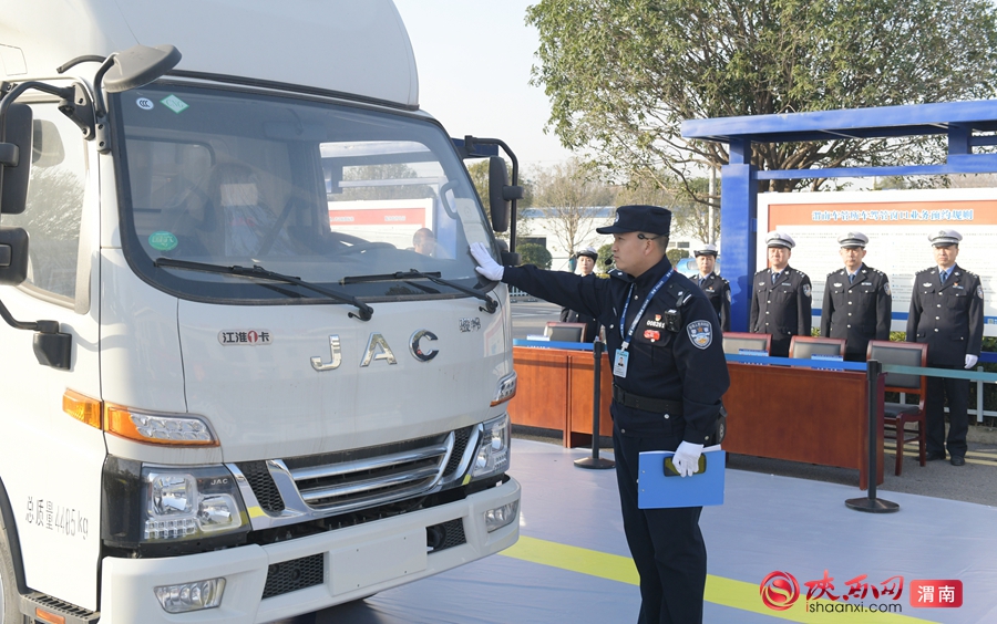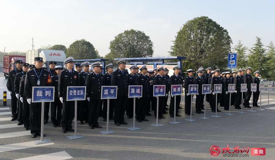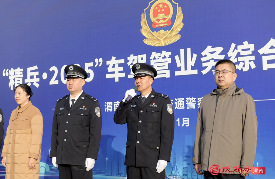 渭南市公安局交警支队政委王亚锋宣布比武开始。记者 杨大君 摄
