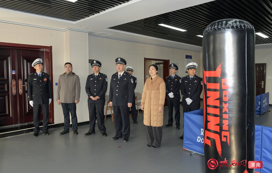 参加活动领导嘉宾观摩车管所健身室。记者 杨大君 摄