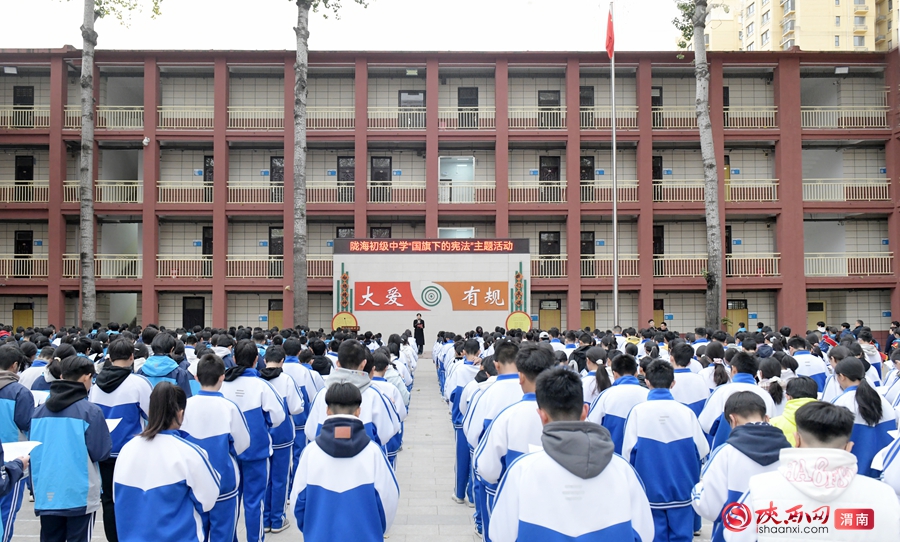 为迎接“12·4”国家宪法日的来临,渭南市临渭区陇海初级中学以“国旗下的宪法”为主题,开展了一堂别开生面的思政课。