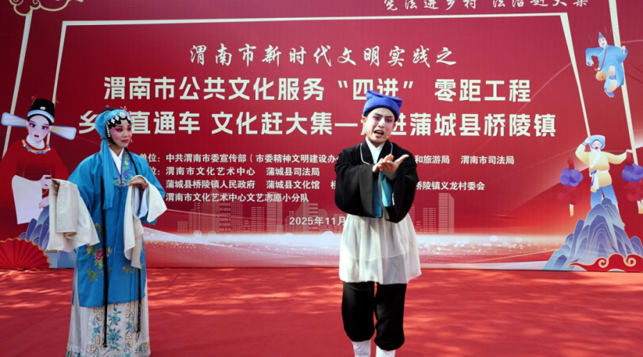 为迎接即将到来的“12·4”国家宪法日,渭南市与蒲城县两级司法、文旅等部门联合,以“宣传+演出”的双轨模式“送法到基层”,在蒲城县桥陵镇开展了一场热热闹闹的“宪法进乡村 法治赶大集”活动。