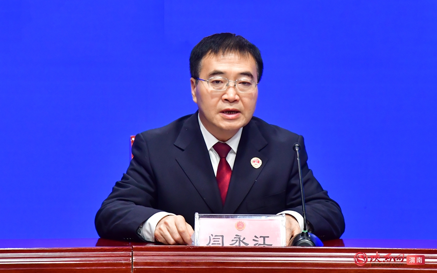 渭南市人民检察院党组副书记、副检察长闫永江通报了今年以来渭南市检察机关“以高质效行政检察履职助推法治渭南建设”工作情况。记者 罗娜 摄
