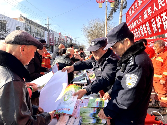 【白水县公安局仓颉森林派出所开展森林防火宣传工作】为切实做好县区域内冬季森林防火宣传工作,贯彻落实好上级关于森林防火工作的有关指示精神,严防森林火灾的发生。近日,白水县公安局仓颉森林派出所组织民辅警与林业局等相关部门联合前往白水县林皋镇进行森林防火宣传工作。